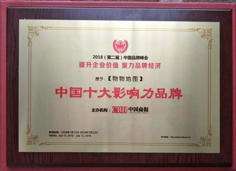 新榮譽 新鞭策 新起點 --祝賀【物物地圖】榮獲“2018中國十大影響力品牌”